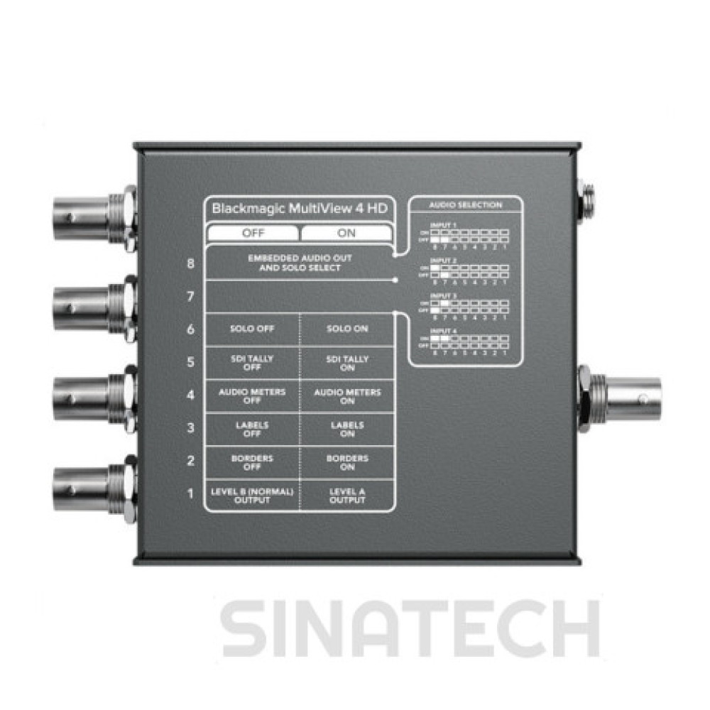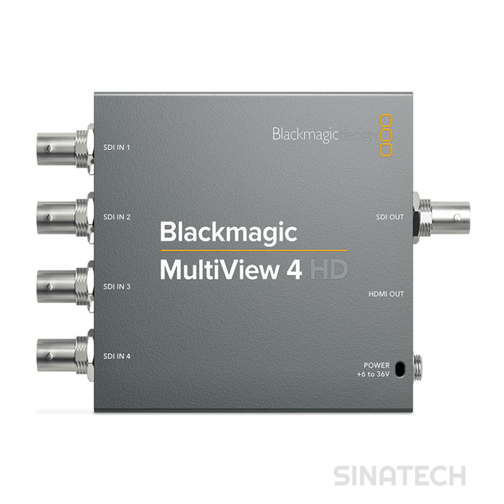 Blackmagic MultiView 4 HD — решение для одновременного вывода на экран четырех разных SDI-сигналов . Каждое окно является независимым, допуская включение и отключение таких дополнительных параметров, как идентификаторы и уровень звука. Полная повторная синхронизация позволяет работать с любой комбинацией форматов до 1080p/60, даже если они отличаются по кадровой частоте. Интерфейс 3G-SDI обеспечивает разную скорость передачи данных, поэтому устройство совместимо со всей SD- и HD-техникой , включая оборудование обоих уровней (Level A и Level B). Кроме того, благодаря выходам 3G-SDI и HDMI можно использовать профессиональные SDI-дисплеи и недорогие бытовые телевизоры.