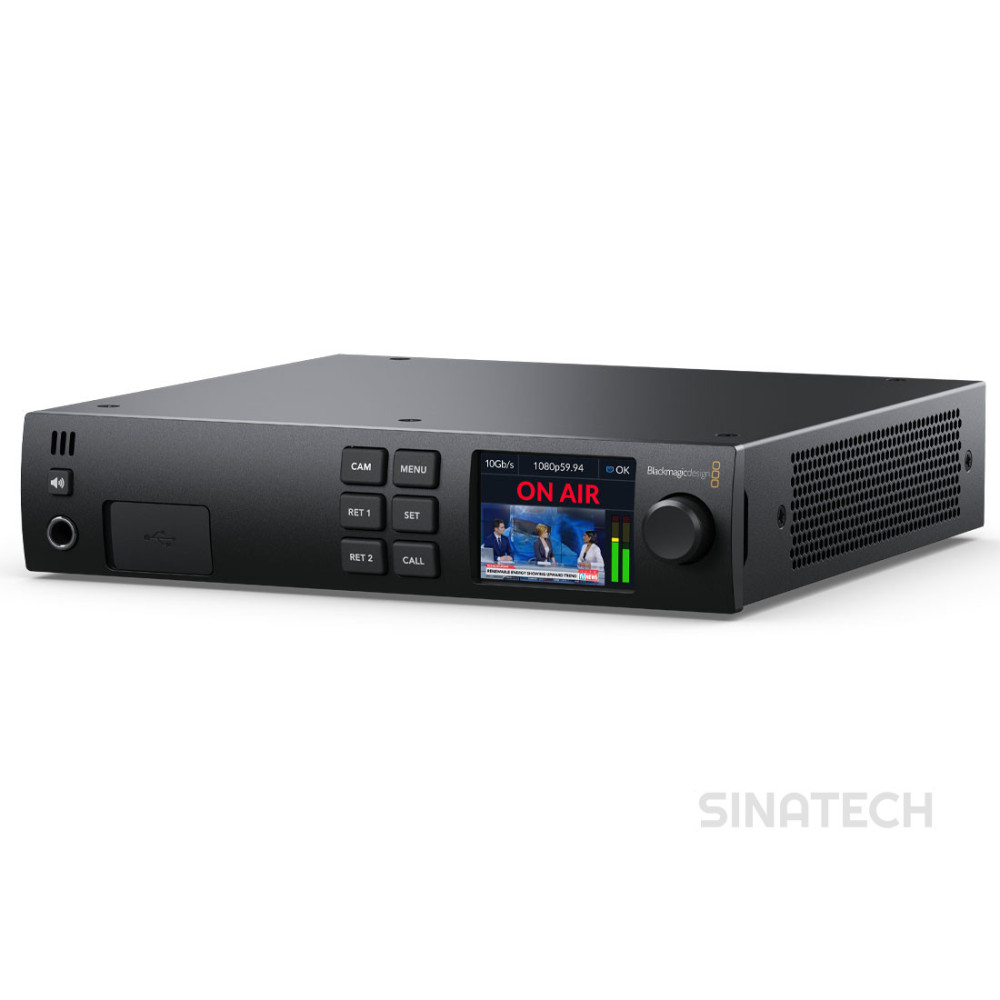 Blackmagic Studio Converter студийный конвертер для камеры Blackmagic Studio Camera 4K Pro. Позволяет передавать по одному IP-соединению сигнал видео и обратное программное изображение, тайм-код, опорный сигнал и Tally-индикацию, голосовые сообщения и команды управления. Подобная конфигурация имеет преимущества оптоволокна по стандарту SMPTE, однако за счет медного Ethernet-кабеля она существенно дешевле. Для приема всех потоков используется студийный конвертер Blackmagic, который также обеспечивает энергоснабжение съемочной техники, поэтому при работе необязательно находиться рядом с источником питания.