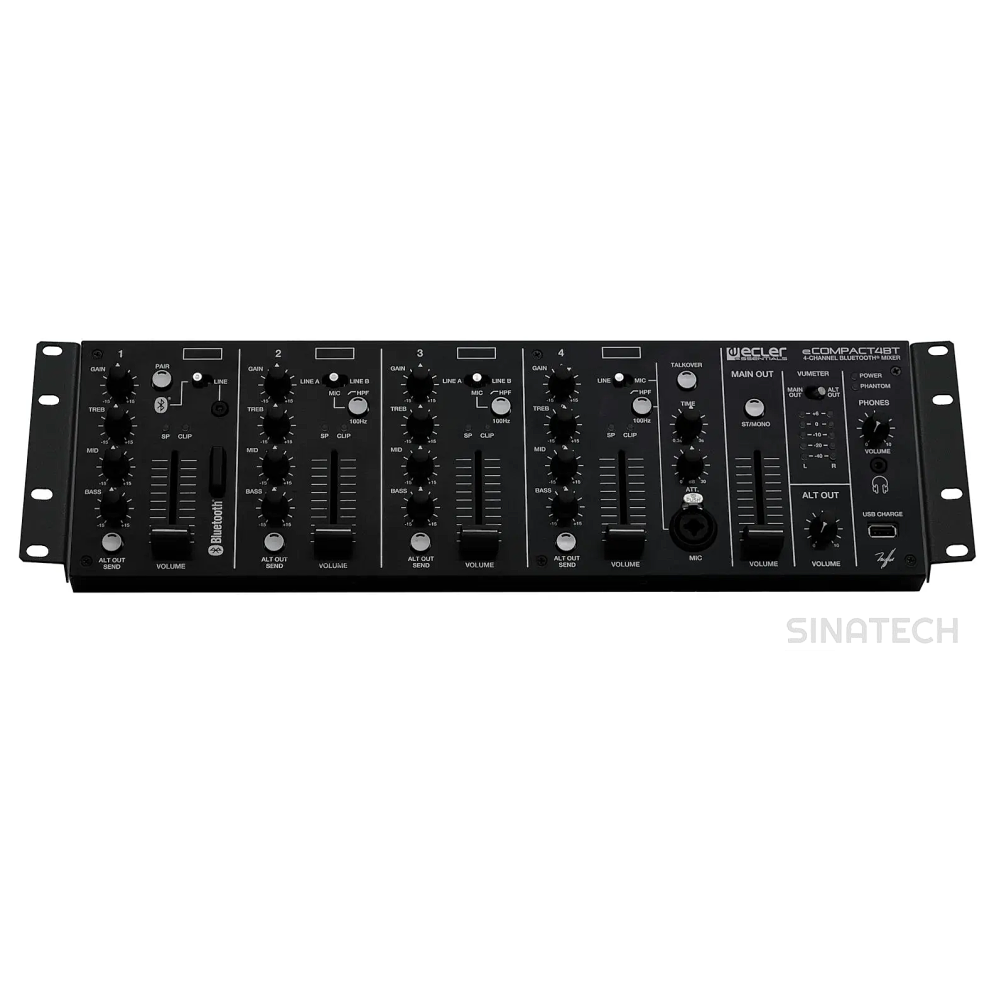 eCOMPACT4BT – микшерный пульт, имеющий 4 независимых канала, оснащенных 4