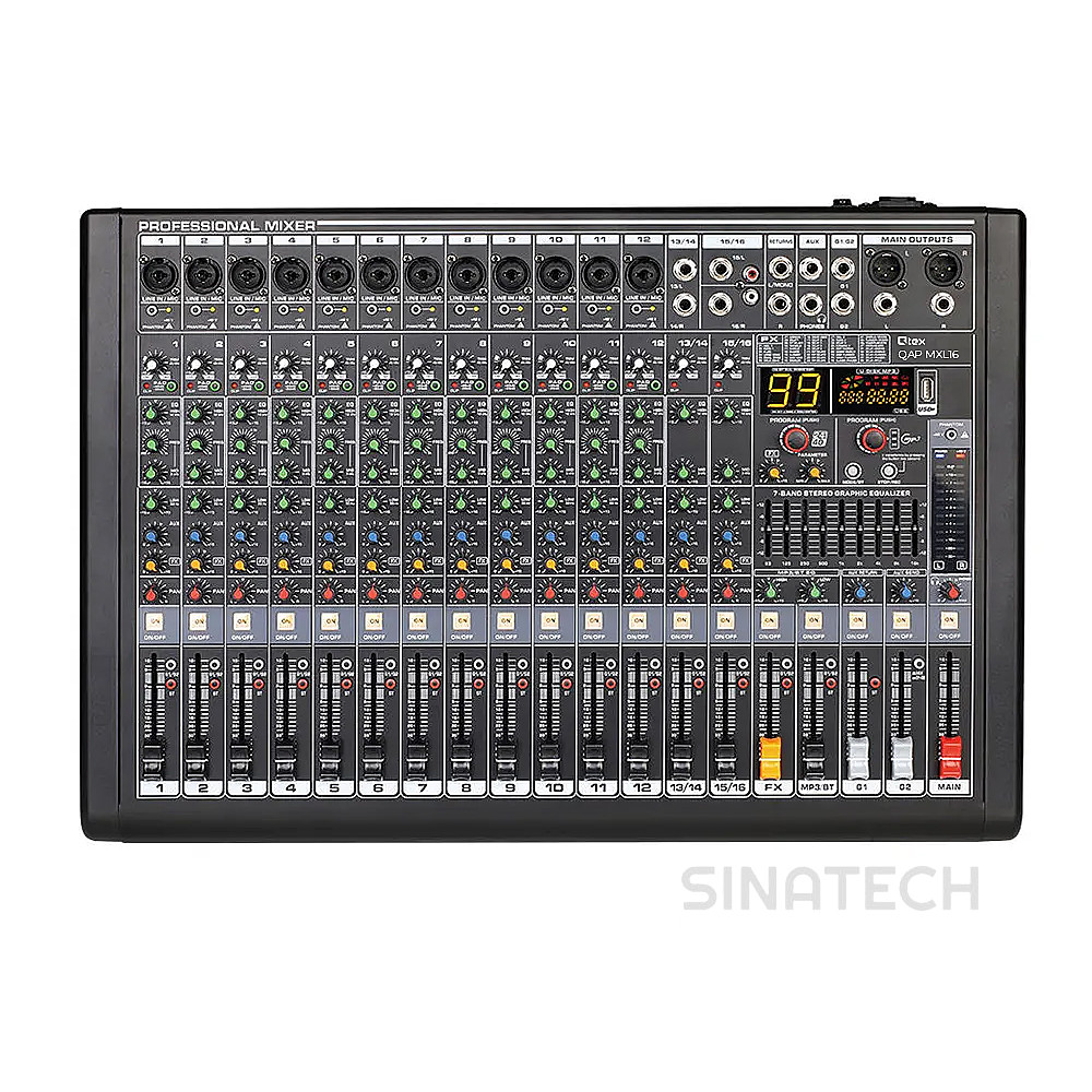 Технические характеристики Qtex QAP MXL16 16-канальный микшерный пульт