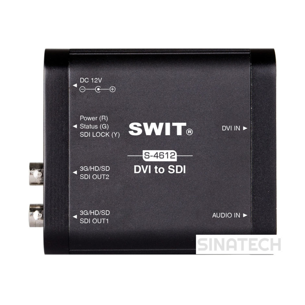 SWIT S-4612 идеально подходит для преобразования видео сигнала DVI в SDI с вводом аналогового звука (1-й и 2-й канал) в SDI. Позволяет передавать DVI сигнал по коаксиальному кабелю на большое расстояние. В комплект поставки входит адаптер питания 220/12В и монтажная пластина с набором крепежных винтов.