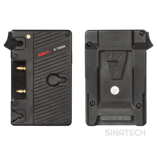 SWIT S-7005A переходная площадка для установки аккумуляторов типа Gold mount на камеры или светильники с предустановленной площадкой V-mount. Дополнительный разъем D-tap для подключения периферийного оборудования.
